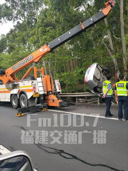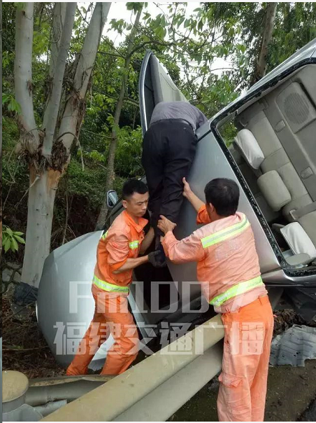 小车“悬挂”护栏,险象环生