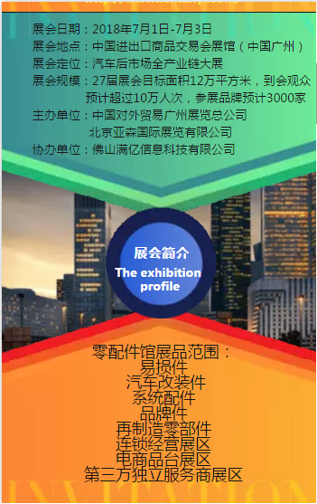 2018年7月1日-3日,第27届广州国际汽车用品.零配件及售后服务展览会将隆重举行,由佛山市满亿信息科技有限公司组织的观展团现在可以报名参加了!